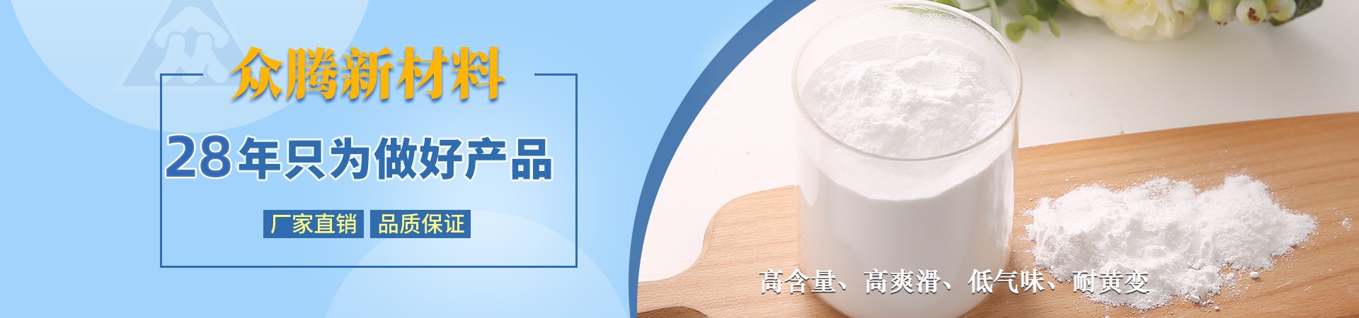 南通海門眾騰新材料科技有限公司與德國ZOTN公司合作,始建于1995年,地處長江三角洲與國際大都市上海隔江相望,座落于江蘇省南通市海門區。公司固定資產2000萬元,具備先進、齊全的科研設施,擁有一批已積累多年開發、技術應用經驗的專業技術人員,同類產品采用目前國際先進的自動控制裝置。產品主要有芥酸酰胺、硬脂基芥酸酰胺、油酸酰胺、硬脂酸酰胺、塑料光亮劑、塑料抗靜電劑、EBS、EBO、開口劑等,廣泛應用于生物降解材料、母料、塑料、吹膜、PE粉末涂料、 油墨等行業,年銷售量3000噸,出口量占60%。公司產品均已通過SGS綠色環保檢測,符合歐盟ROHS環保指令,并達食品、醫藥級要求。忠誠合作,和諧創造!讓我們攜手并進,共創美好明天!